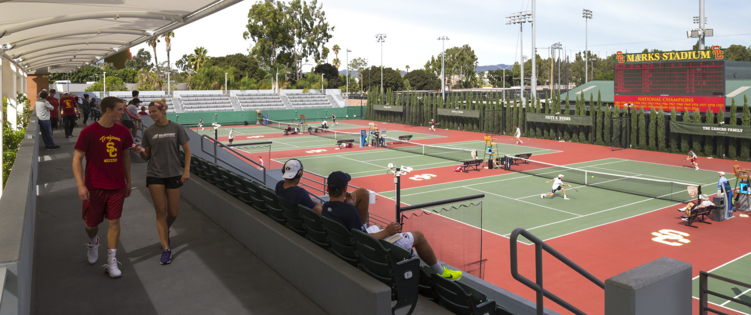 The USC men's and women's tennis teams have called the David X. Marks Tennis Stadium home since its construction in 1971. This season, Trojan tennis sees its home revamped and renovated, bringing the venue up to date and in line with the impressive accomplishments of both programs. USC broke ground on the new Buntmann Family Tennis Center on Feb. 24, 2015, starting an impressive renovation project with the goal of elevating Marks Tennis Stadium to be on par with the best facilities in the country by creating an inviting, elegant, bright and safe training and competition environment.