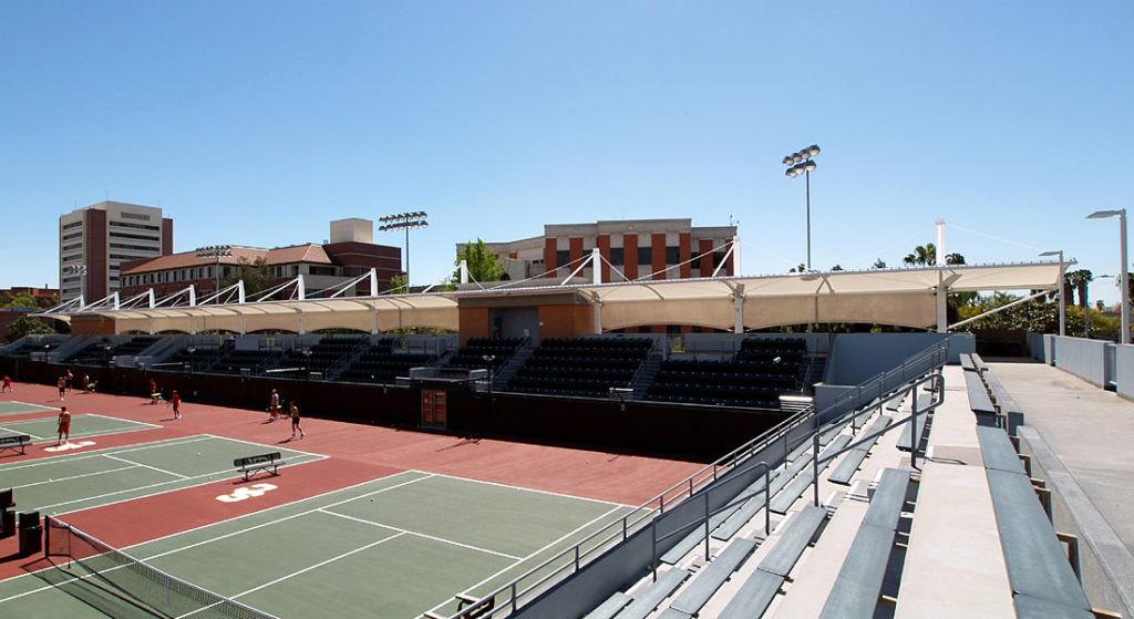 The teams are now able to utilize and enjoy brand-new suites with lockers, showers, team meeting rooms and lounges. Both teams also have access to a new training room, a stringing storage area and a large multi-purpose room. To better accommodate and enhance the spectator experience, new spectator shade canopies has been added, a new elevator to the seating area has been installed.