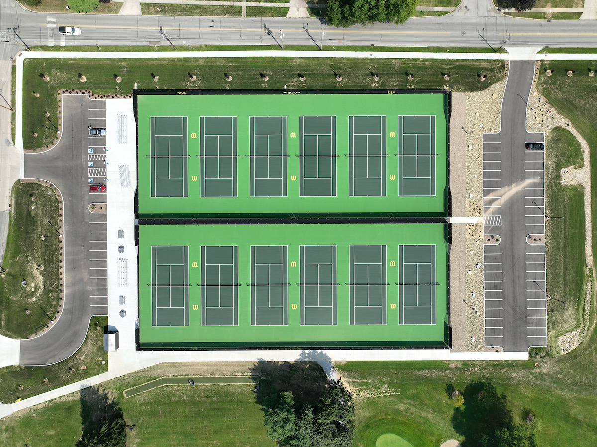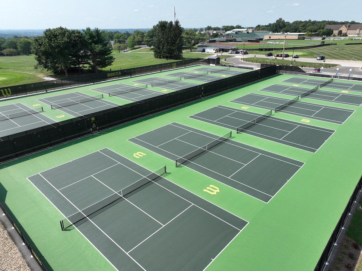 The College of Wooster's new tennis facility, featuring 12 state-of-the-art courts, proudly serves as the home of the men's and women's tennis teams. This $2.6 million project provides a modern, high-quality venue designed to enhance the experience for players and fans alike. Bleacher seating will be relocated from the previous courts on campus, ensuring a comfortable viewing area, while ample parking makes the facility easily accessible. In the coming weeks, windscreens showcasing the College's new branding and mascot, Archie, will be added, giving the courts a distinctive Wooster identity.